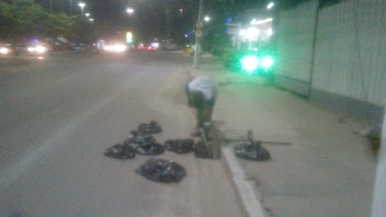 No trecho entre a Maternidade Alzira Reis e o Aero Clube, foram 29 ralos limpos e gastos 40 sacos.