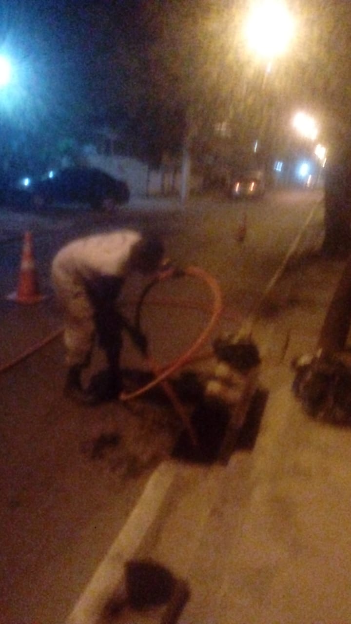 Na Engenhoca, uma caixa de passagem foi limpa e lavados 25 metros de rede.