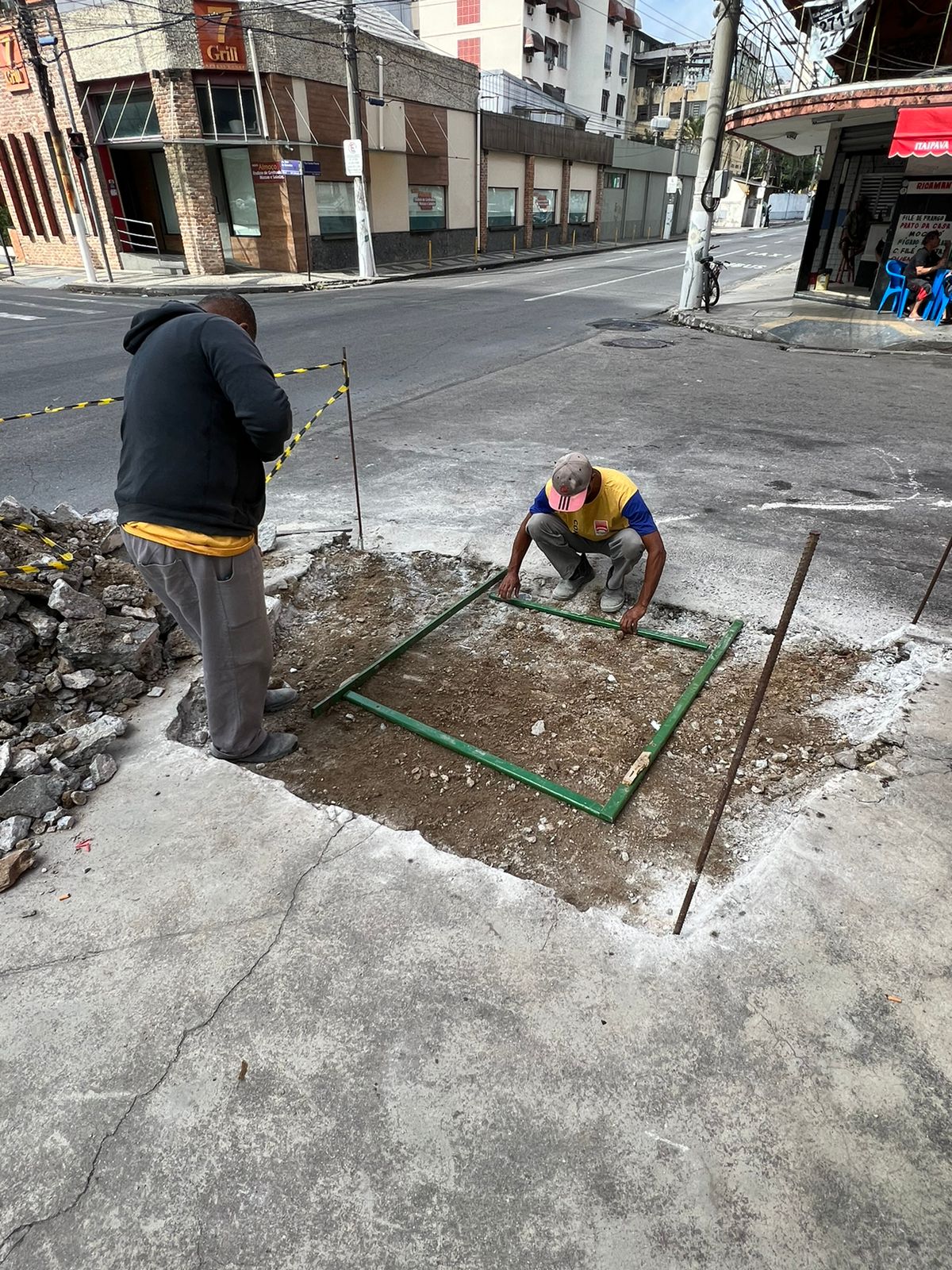 Recuperação do calçadão em pedra portuguesa e da jardineira também