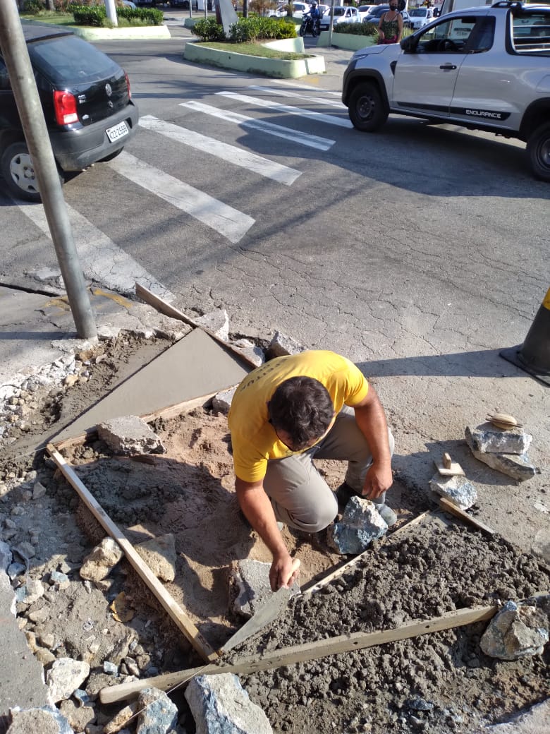 Retirada de frades e recuperação de calçada em pedra portuguesa.